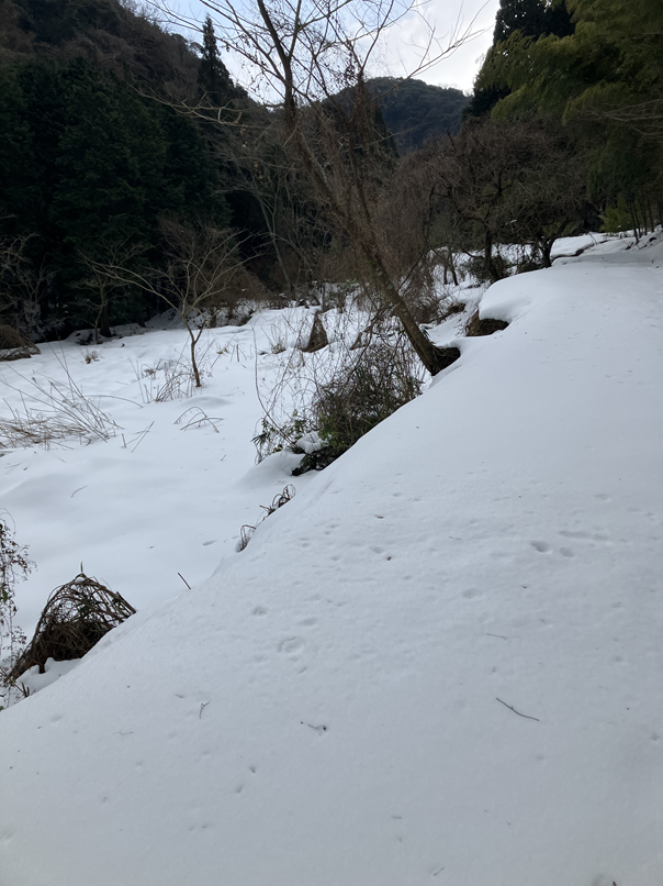 この道以外にも新しい足跡を数か所見つけました。もしかすると同じ個体の散歩道なのかもしれません。チャンスがあったら、追いかけてみようとおもいます。