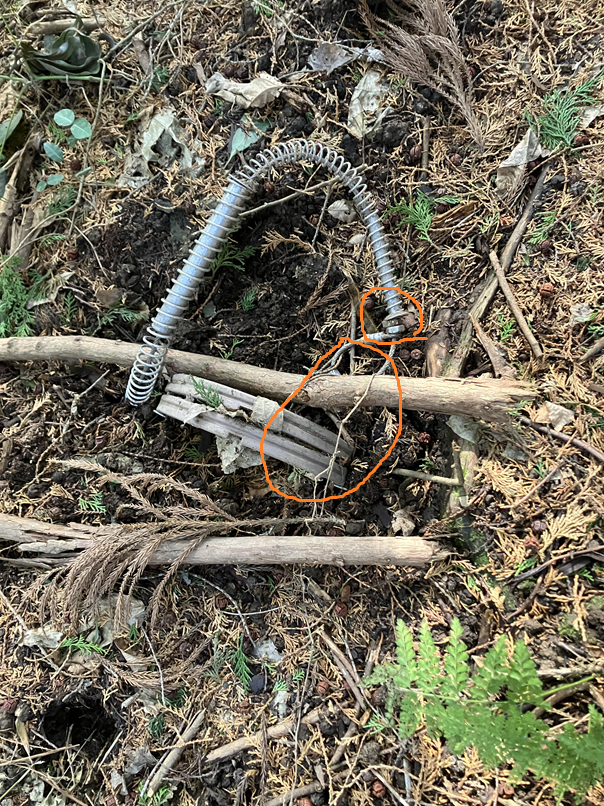 最期に山に入った際に罠が空はじきしていたのですが、運悪くワイヤーに植物のツルが絡まってしまい締まりきっていませんでした。