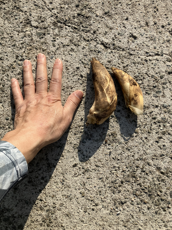 我が家の竹林ですが、先週あたりから、早出のタケノコが食い荒らされています。