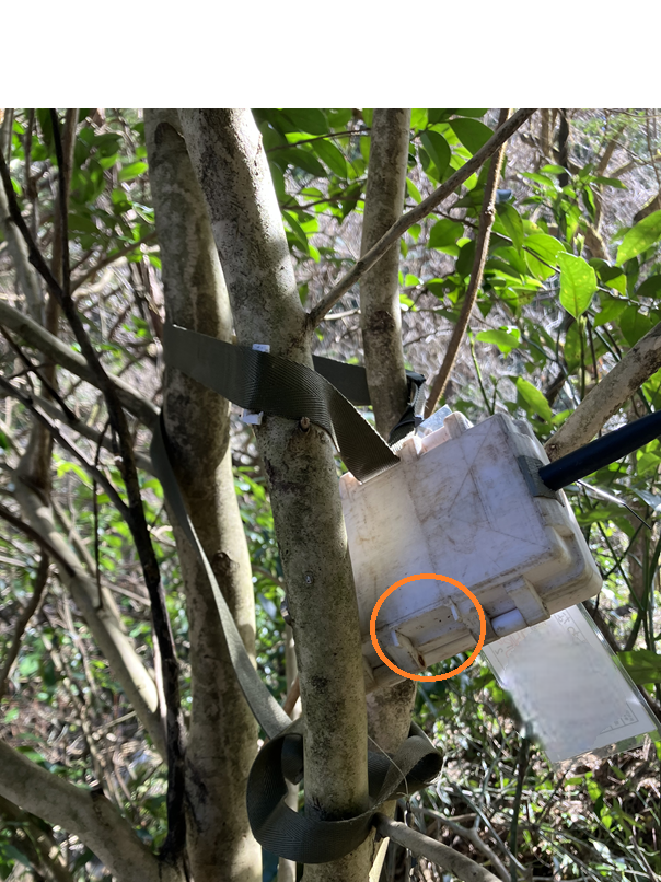 罠は積雪の影響はありませんでしたが、センサーの方はセンサーケースの固定部分が破損していました。