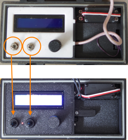 | 2 | 操作パネル トグルスイッチ | 雨やほこりで故障するリスクがある | トグルスイッチの接点保護のため汎用の防水カバーで保護しました |